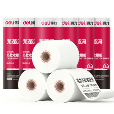 得力 3206莱茵河收银纸 2卷/筒 80mm*50mm*20m 2卷/筒 3206