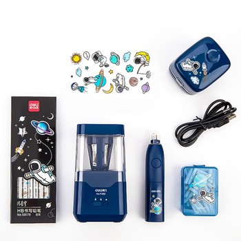 得力deli 68910中国航天电动文具套装 68910 蓝
